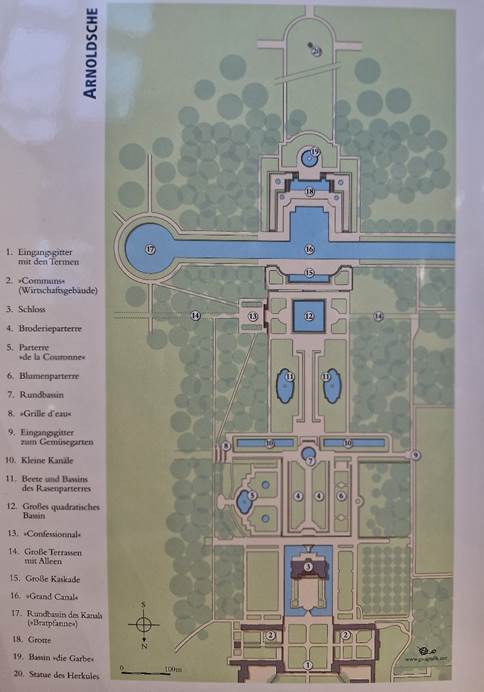 [6] Die Broderien wurden in den 1920-er Jahren rekonstruiert, allerdings nicht in der ursprünglichen Feinheit. Siehe Brix, Der barocke Garten, S. 70f