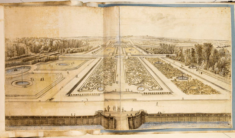 Das Panorama, das sich von dem leicht erhöhten Schloss auf den Garten bietet, ist grandios: „Fernab der bisher geltenden Regeln der Renaissance und des italienischen Manierismus wird ein Park ohne Mauerbegrenzung mit einer bis dahin unbekannten perspektivischen Wirkung in eine endlos scheinende Landschaft gestellt.“[2] Der in der Entstehungszeit von Schloss und Garten angefertigte Stich von Israël Sylvestre zeigt das sehr eindrucksvoll.[3]