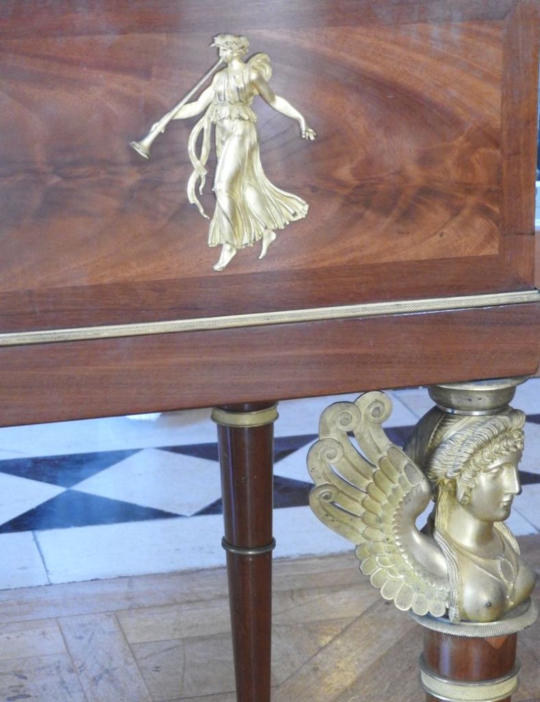 Bezüge zu Frankreich und zu bisherigen Blog-Beiträgen gibt es also genug. Aber es gibt auch deutliche Unterschiede: Nicht nur dass es in Ludwigslust kein Schlosstheater gibt, weil das für den pietistischen Schlossherrn Friedrich des Teufels war; auch das in Versailles so beliebte Kartenspiel war in Ludwigslust Tabu. Der wichtigste Unterschied allerdings: Während in Versailles echtes Gold glänzte, war das in Ludwigslust anders. Die Mecklenburger Herzöge befanden sich seit jeher in finanziellen Nöten, ein bisschen Versailles-Glanz wollten sie aber schon haben: Also Pappmaché und Farbe statt Gold, Bronze und andere teuren Materialien. In Ludwigslust ist also nicht alles Gold, was glänzt…