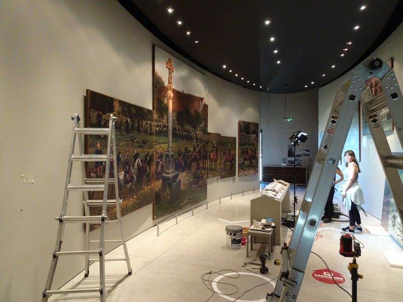 Hier im Musée Napoléon ist der Kontext ein ganz anderer: Unterhalb des Bildes ist nämlich eine von dem italienischen Bildhauer Laurenzo Bartolini geschaffene monumentale, 1,55 m hohe Büste Napoleons aufgestellt.