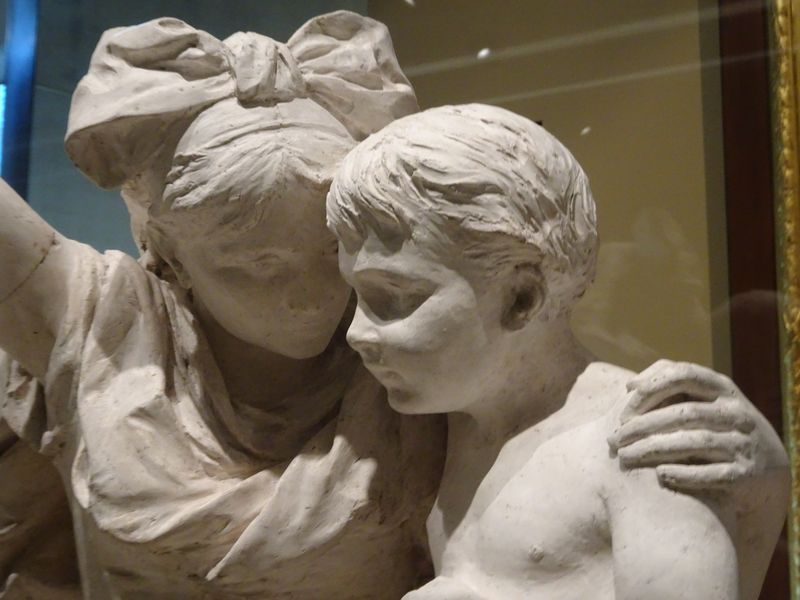 Hier ein Detail einer Vase von Antoine Béranger aus dem Jahr 1813, auf der der Zug der erbeuteten Kunstwerke aus Italien dargestellt ist. Links die Venus von Medici aus den Uffizien, rechts die Laokoon-Gruppe aus den vatikanischen Sammlungen.