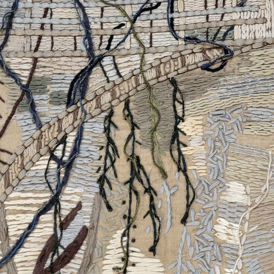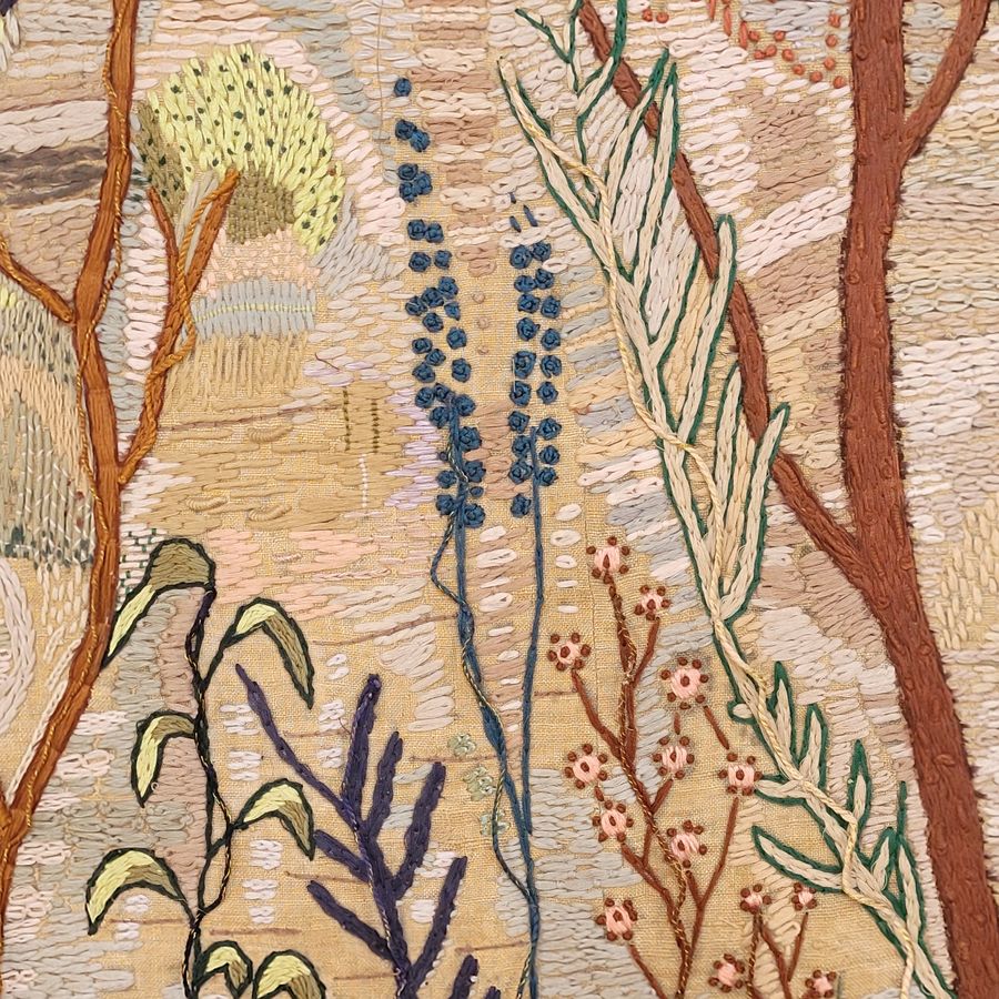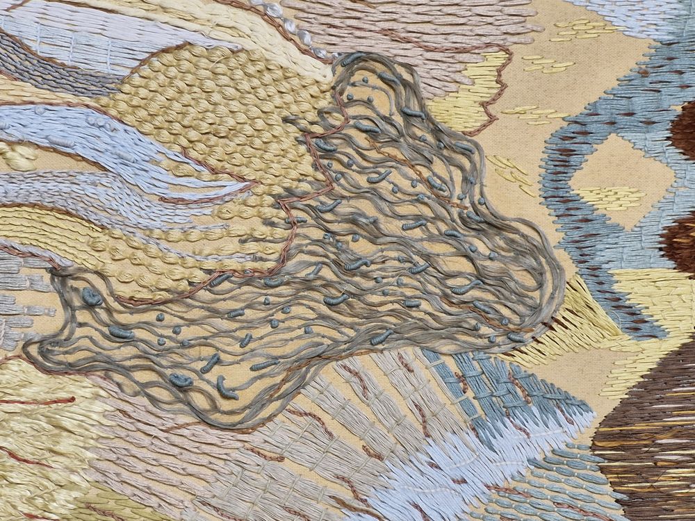 Schon hier wie auch später verwendet Séraphine florale Motive. Die Vorlage waren wohl Blumen, die sie auf ihren Spaziergängen fand – wie den Weißwurz, das Vergissmeinicht-Ästchen oder die beiden Hahnenfüße auf diesem Bild.