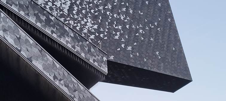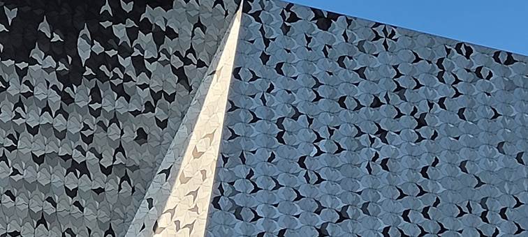 Die Pariser Philharmonie feiert in diesem Jahr ihr 10-jähriges Jubliläum: Ein von Jean Nouvel entworfener grandioser Bau, um den es viele Auseinandersetzungen gab. Da ging es zunächst um den Ort: nicht im Zentrum von Paris, da wo das kulturelle Leben sich traditionell abspielt, sondern am nord-östlichen Rand der Stadt, direkt neben der Autobahn (Periphérique), auf dem früheren Gelände der Schlachthöfe. Dann die galoppierenden Kostenüberschreitungen: Zunächst waren 200 Millionen eingeplant, es gab aber Probleme bei der Bauausführung, mit den beteiligten Unternehmen, Verzögerungen, die Inflation… Zum Trost wird jetzt im Rückblick auf die exorbitanten Kostensteigerungen bei der Elbphilharmonie verwiesen (von 77 auf 789 Millionen). In Paris aber zog der Staat bei 386 Millionen die Notbremse. Unter anderem soll darunter die Ausführung der Fassade mit ihren ca 300 000 auffliegenden, den großen Aufbruch der Kultur symbolisierenden Vögeln gelitten haben. Für „naive“ Besucher wie wir ist das allerdings nicht erkennbar.