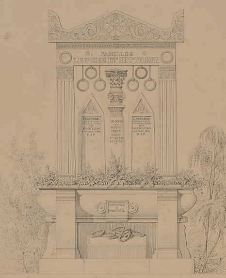 Abb. 5: Jakob-Ignaz Hittorff: Entwurf für das Grabmal der Familien Lepère und Hittorff 1844 (Ausschnitt)