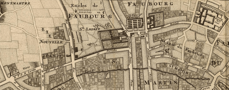 Die Kirche St. Vincent de Paul wurde im ehemaligen Quartier bzw. Faubourg Poissonière erbaut, der, wie alte Karten zeigen, mit der Region Nouvelle-France den westlichen Teil des Faubourg Poissonnière umfasste, während der nordöstliche Teil als ‚Clos Saint-Lazare‘ oder ‚Enclose de Saint-Lazare‘ bezeichnet wurde. Der erstere entspricht dem heutigen IXe, der letztere Teil dem heutigen Xe Arrondissement.