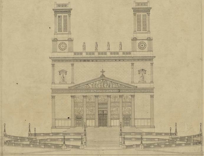 Abb. 7: Hittorffs Entwurf für die Église de St. Vincent-de-Paul, Fassade und Treppenaufgang