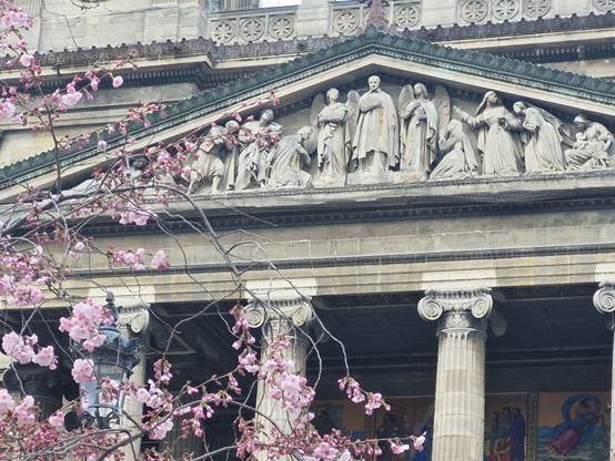 Für Hittorff mit seinem Sinn für einen großartigen Auftritt, wie wir ihn auch von seinem letzten Großprojekt, dem Gare du Nord, kennen, war die Doppelturmfassade unerlässlich für einen glanz- und machtvollen Bau der christlichen Wiedererneuerung. Eindrucksvolle Beispiele dafür konnte man ja unmittelbar in Paris an Notre-Dame und an der von Jean-Nicolas Servandoni erbauten Kirche Saint-Sulpice (1631-1732) sehen.[11]