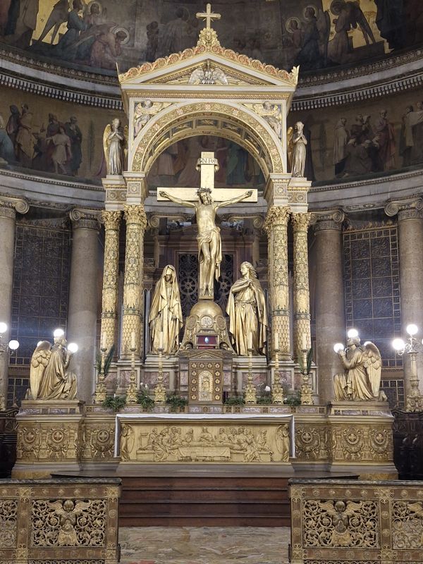 Eine weitere Änderung des ursprünglichen Lepère-Projektes betraf die Seitenkapellen, vier auf beiden Seiten. Sie waren nun nicht, wie in Lepères Entwurf durch Wände getrennt, sondern nur noch durch niedrige Gitter, so dass der Eindruck einer fünfschiffigen Basilika als frühchristliches Revival entstand.