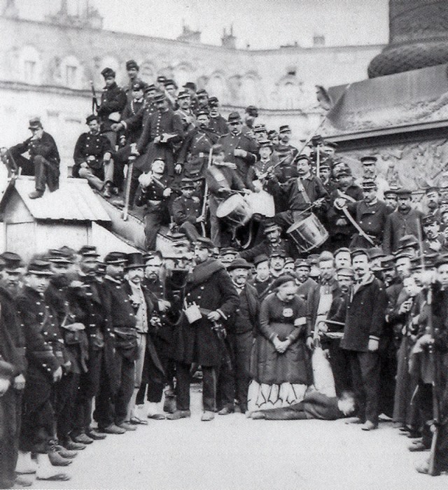 Und es werden erste Erinnerungsfotos gemacht wie dieses: Nationalgardisten und Kommunard/innen in Festtagskleidung, die für ein Gruppenfoto posieren und sich stolz portraitieren lassen.