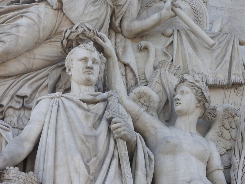 Dieser von Napoleon projektierte und im Empire begonnene gewaltige Triumphbogen, der größte weltweit, wurde 1836 während der Herrschaft des „Bürgerkönigs“ Louis Philippe fertiggestellt. Er sollte die Legitimität des Königs manifestieren durch den doppelten Bezug auf das Reich Napoleons und die Französische Revolution. In diesem Kontext ist der hervorgehobene Platz der „Marseillaise“ auf dem Triumphbogen zu erklären.[2]