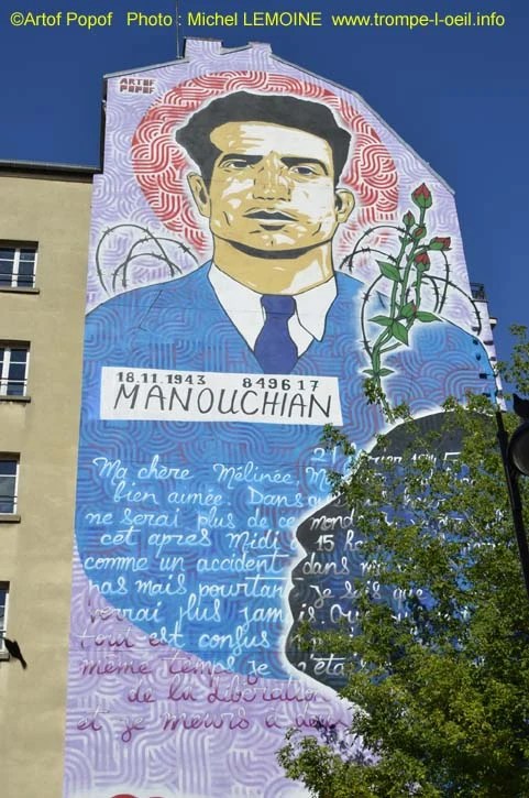 Anlässlich der Pantheonisierung von Missak Manouchian und seiner Gruppe hat C 215 im Gefängnis von Fresnes Portraits der Männer des affiche rouge und weiterer Personen von FTP- MOI angefertigt. Siehe l’Humanité vom 20.2.2024 https://www.humanite.fr/politique/c215/manouchian-au-pantheon-lhommage-de-lartiste-c215-a-la-prison-de-fresnes