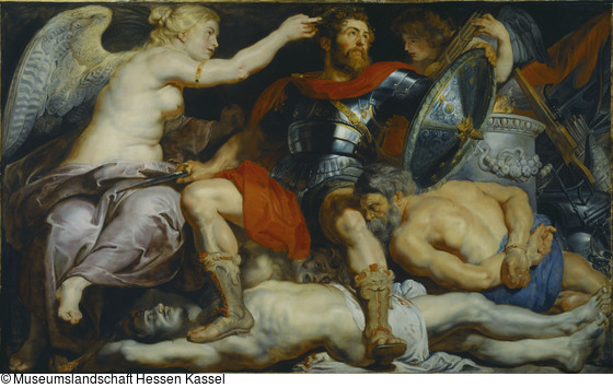 Das Motiv der vier Gefangenen wurde dann wieder aufgegriffen für die Reiterstatue Ludwigs XIV. auf der place des victoires in Paris. Anlass war der mit dem Frieden von Nimwegen siegreich beendete holländische Krieg des Sonnenkönigs, und die vier Gefangenen repräsentierten die vier besiegten Länder: Der Anspruch universeller Herrschaft war hier, anders als noch bei dem Reiterstandbild Heinrichs IV., ganz konkret, mit brutaler Direktheit und ohne jede „manieristische Eleganz“ zum Ausdruck gebracht.[7]