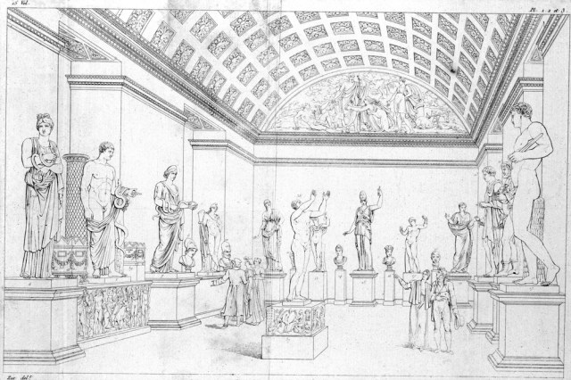 Napoleon beauftragte seinen „Generaldirektor der Museen“, Vivant Denon, mit der Durchführung des Projekts. Denon war daran gelegen, den Ruhm des Kaisers im öffentlichen Raum wirkungsvoll zur Geltung zu bringen. Dazu schrieb er einen Wettbewerb aus. Hier der Entwurf des Architekten und Zeichners Louis-Pierre Baltard, einem damals hochgeschätzten neoklassizistischen Architekten und Zeichner (und Vater des noch berühmteren Victor Baltard): Ein monumentales Konzept ganz im Sinne des Auftraggebers. [22]