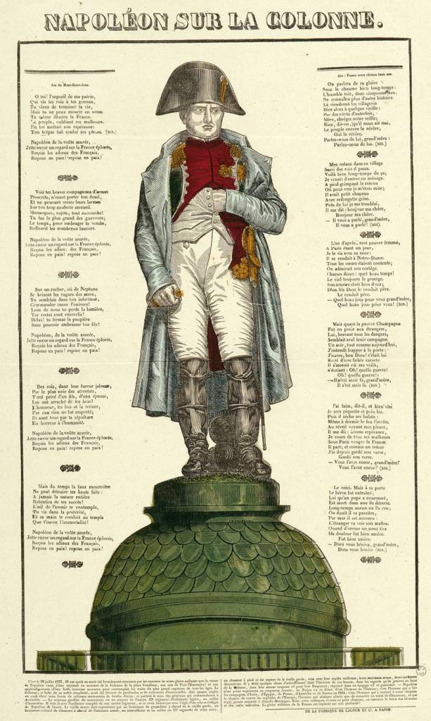 [29] Siehe Edgar Schmitz: Das Trojanische Pferd und die Restauration. Die Auseinandersetzung um die Colonne de la Place Vendôme als Paradigma der gescheiterten Restauration. In: Gudrun Gersmann, Hubertus Kohle (Hrsg.): Frankreich 1815–1830. Trauma oder Utopie? Die Gesellschaft der Restauration und das Erbe der Revolution. Stuttgart 1993, besonders S. 192/193