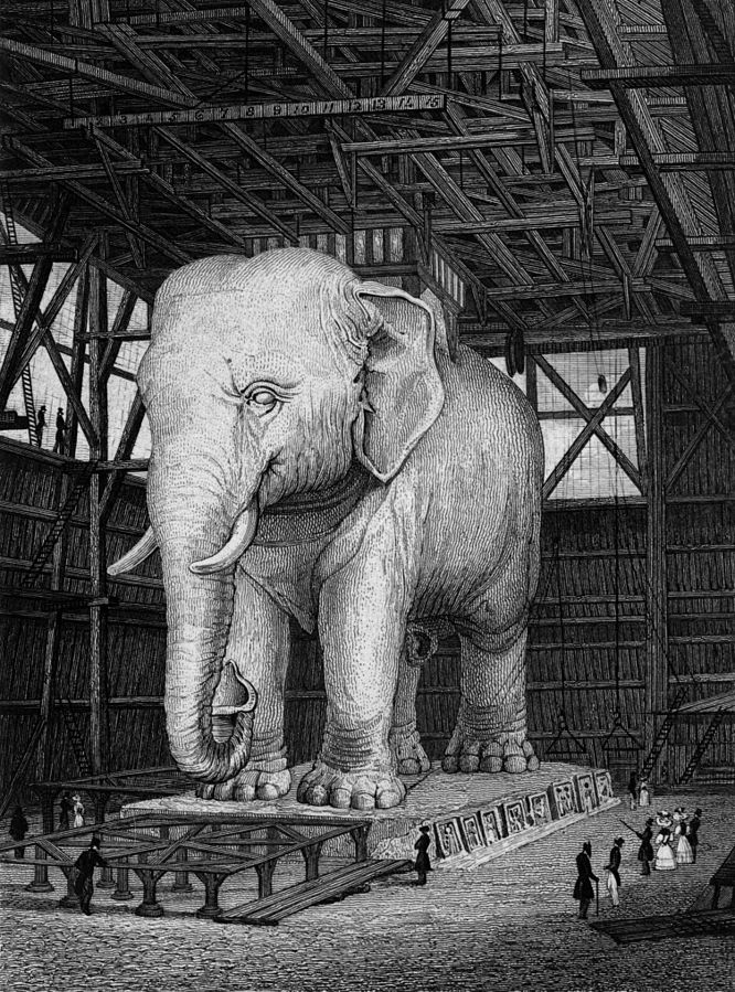 Entworfen wurde das provisorische Standbild von dem aus Köln stammenden Architekten Jakob Ignaz Hittorff, der seit 1810 in Paris lebte und bis zur Ära Haussmann die Stadtentwicklung wesentlich mitprägte. Hittorff wirkte 1814 maßgeblich an der Erstellung der Empfangsbauten für die Bourbonen mit und erhielt dafür den Titel „Inspecteur du Roi pour les fêtes et cérémonies“. [24]